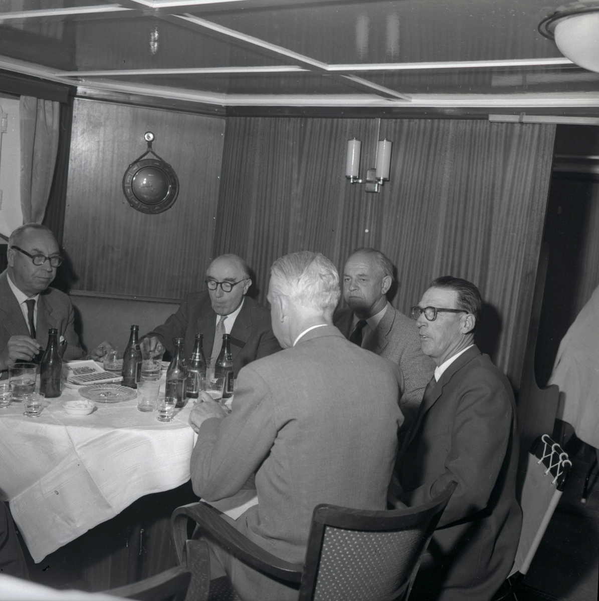 Turistintendent Bertil Sjöberg med flera på M/S Nordpol till Gotland, premiär 1959.