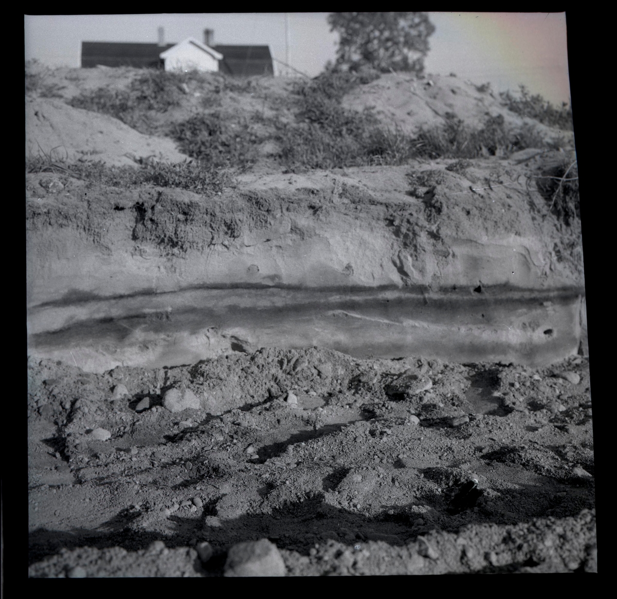 Genomskärning av jordskiktet vid brandgrav i Bredsättra.