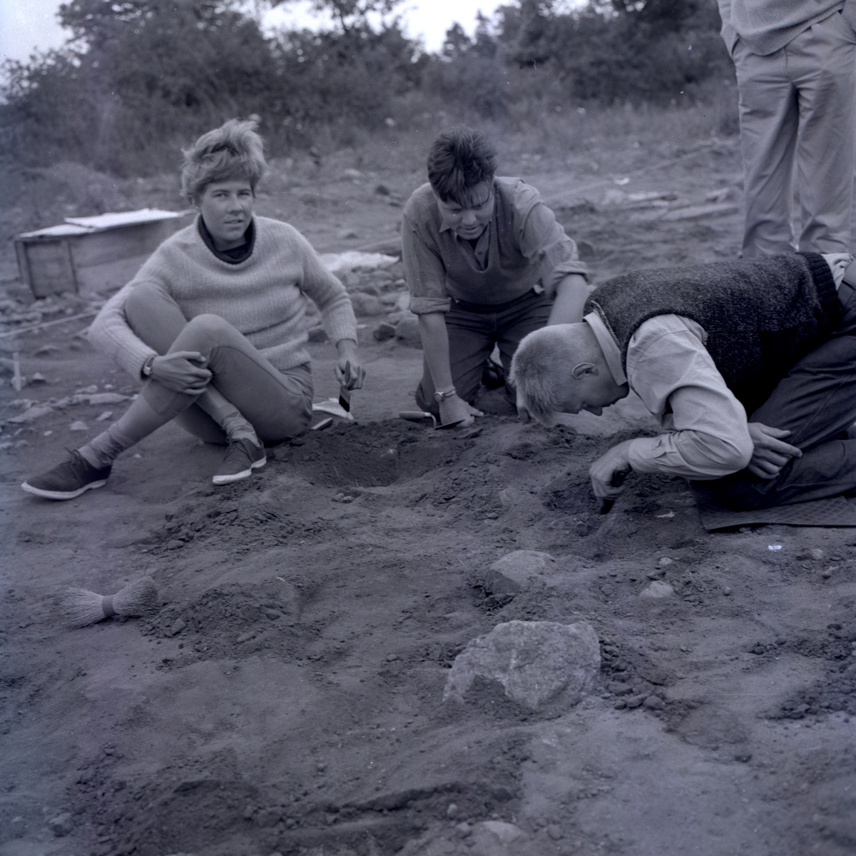 Margareta Beskow, Ulf Erik Hagberg och okänd man sysslar med arkeologi i Bredsättra socken.