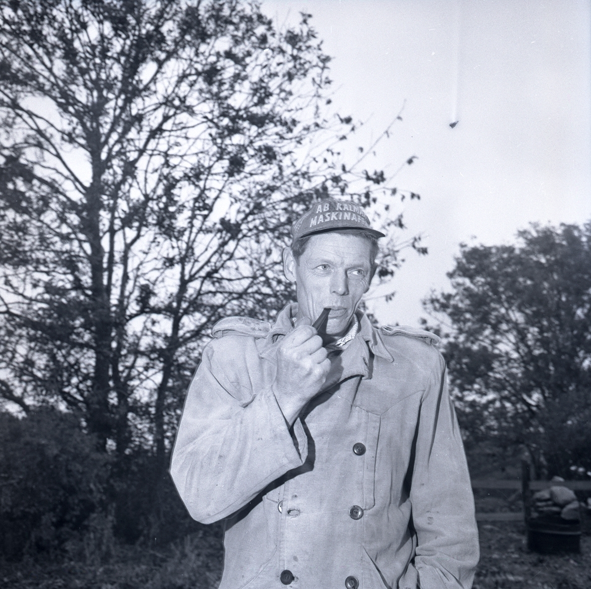 Bild tagen i samband med skördeskadereportage. Man som håller i en pipa.