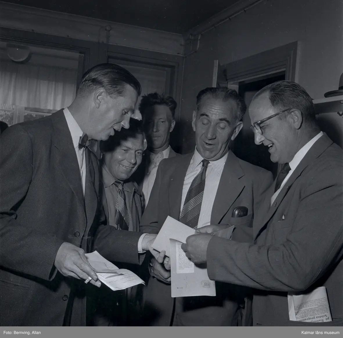 Personer på en socialdemokratisk distriktskongress som sitter och dricker kaffe, sept -57. Angående tjänstepension ATP.