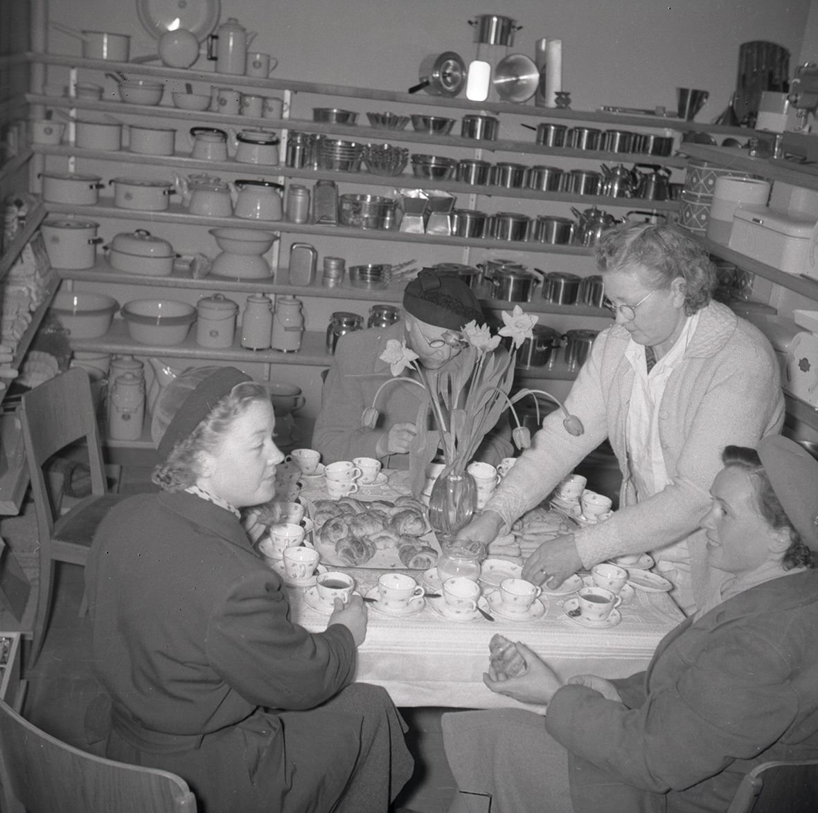 Kvinnor som dricker kaffe i en konsumbutik.