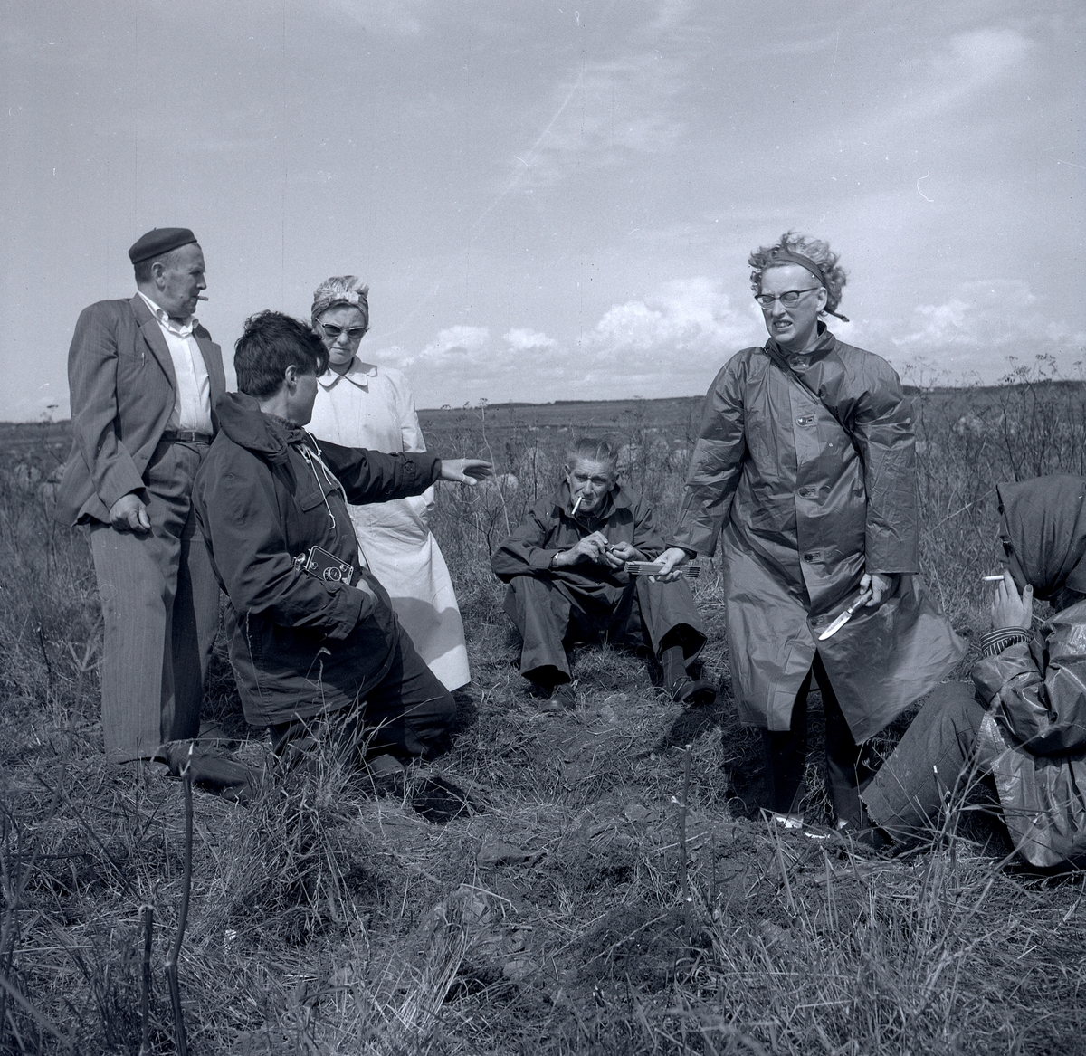 Antikvarie Ulf Erik Hagberg och dr. Ragnhild Boström gör en arkeologisk undersökning på Kåreholm. Kåreholm är en ö intill Kårehamn.