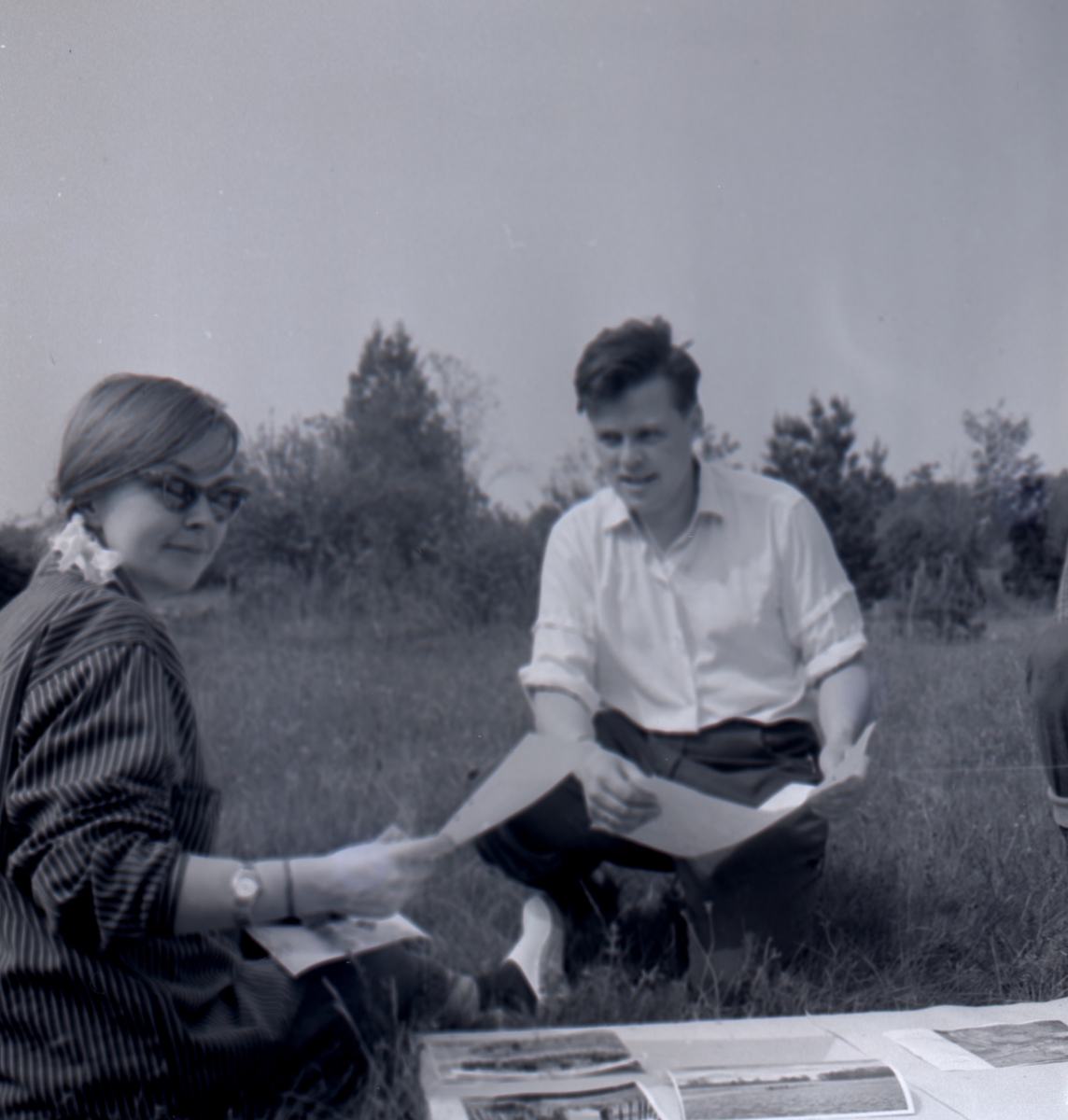 Ulf Erik hagberg och fil.stud. Charlotte Öhnstad, eventuellt Gudrun Sahlgren vid Skedemosse 15/6 1962.