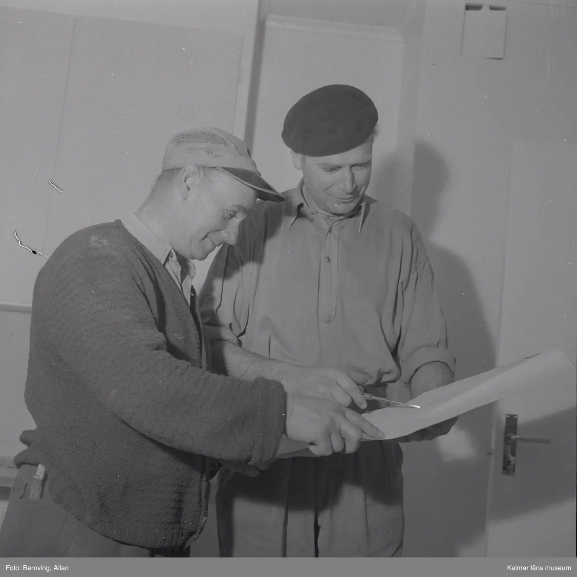 Gärdslösa, invigning av I.O.G.T-gården. Två män som tittar på ett dokument.
