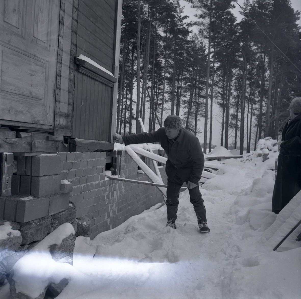 Gärdslösagården i vinterlandskap 16 jan -59. En husgrund.