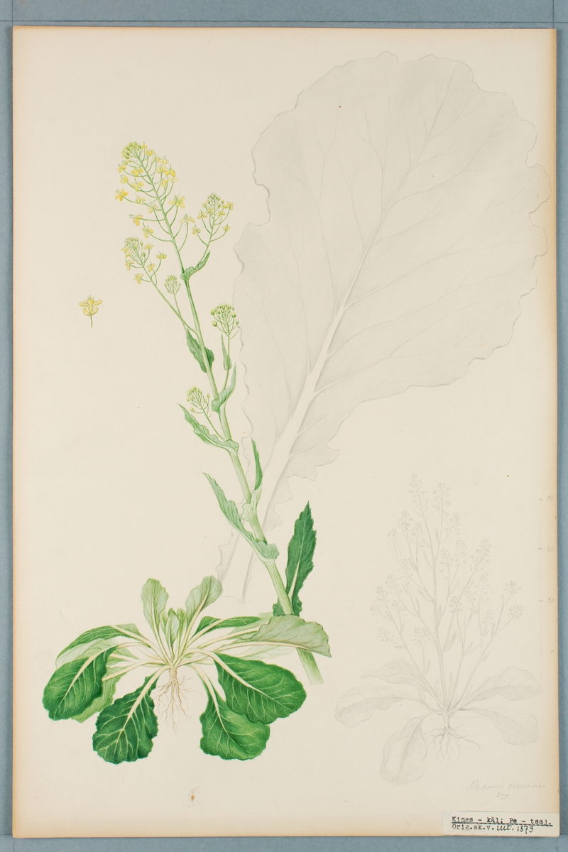 Sveriges kulturväxter. Illustration utförd av Henriette Sjöberg. Kineskål, Pe-Tsaj. Odlad Ultuna 1873. Inv. nr. C101 : 366.
