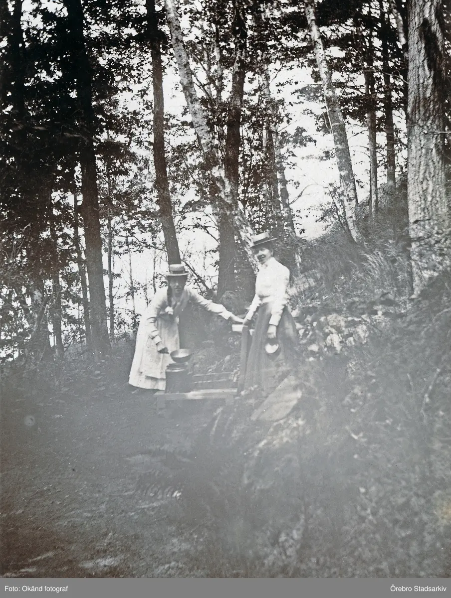 Två kvinnot vid källa i parken vid Hedvigslund, 1916