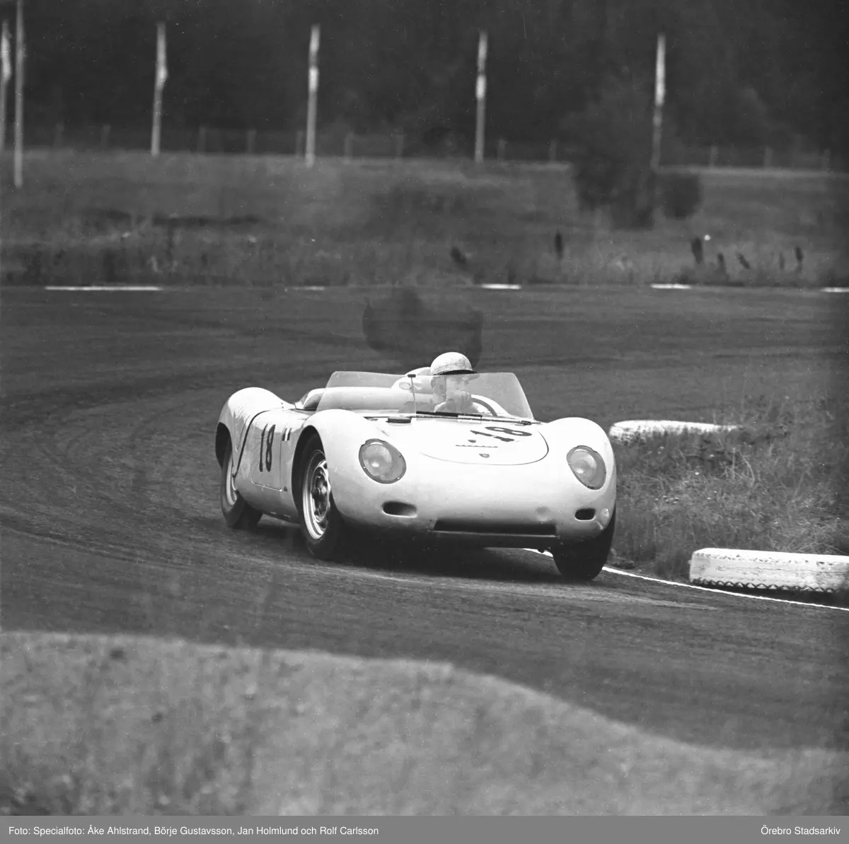 Norinder i sin Porsche. Gelleråsen, Karlskoga. 1960-08-07