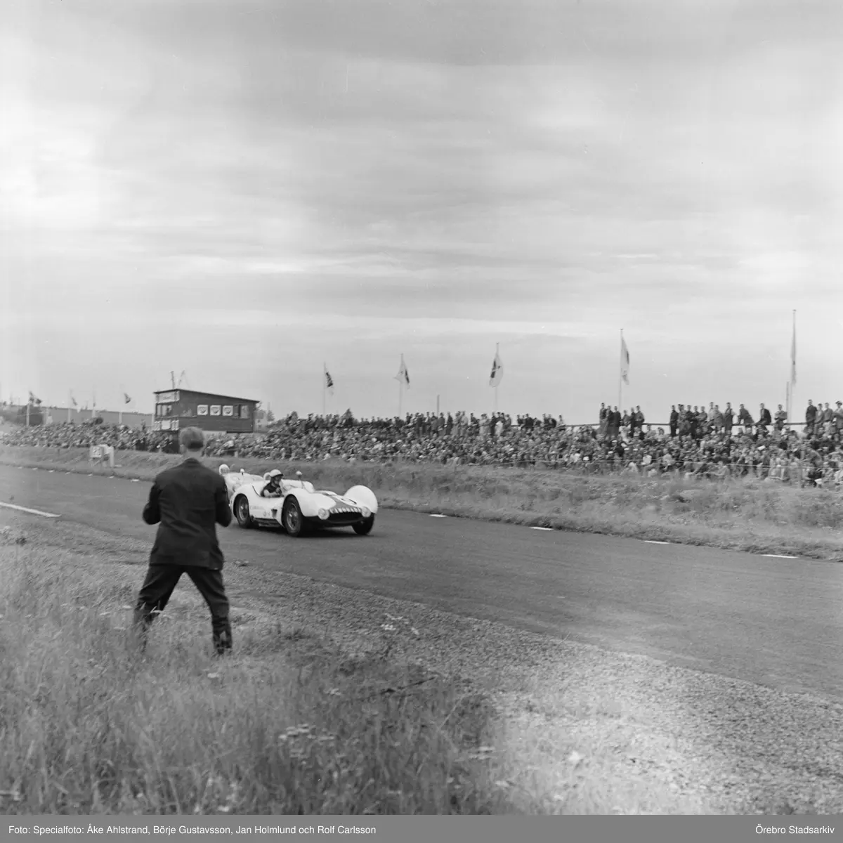 Bonnier och Moss kör i kapp. Gelleråsen, Karlskoga. 1960-08-07