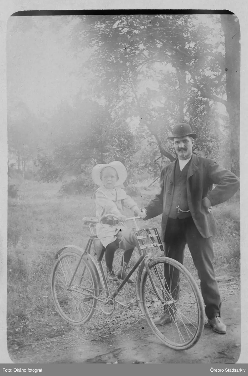 Man med barn på cykel, 1900 ca