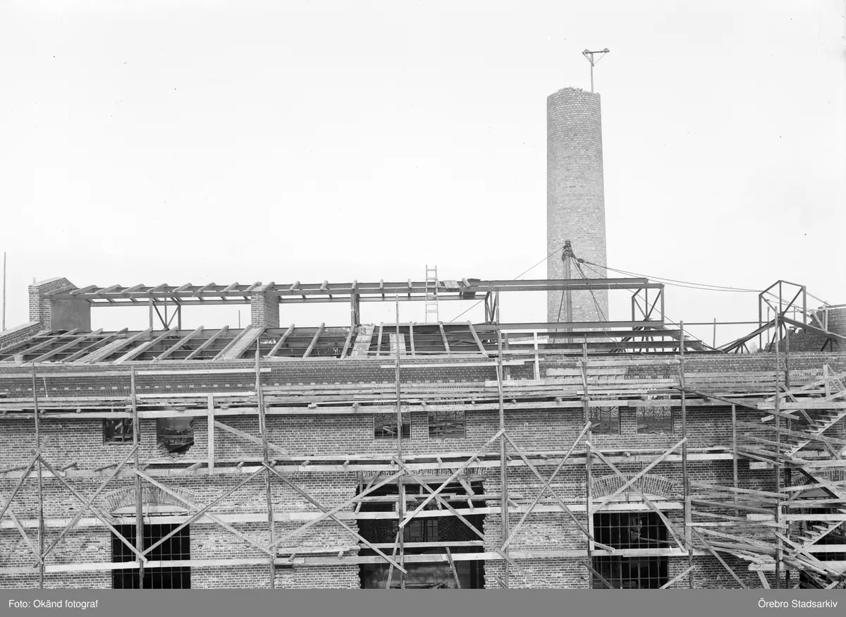 Byggnation av ångcentralen vid CV, 1914