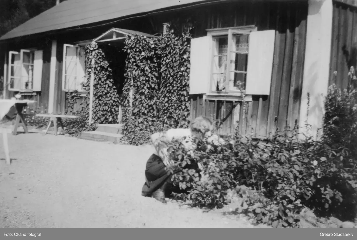 Kvinna utanför lägenheten Edtorp, 1930-tal