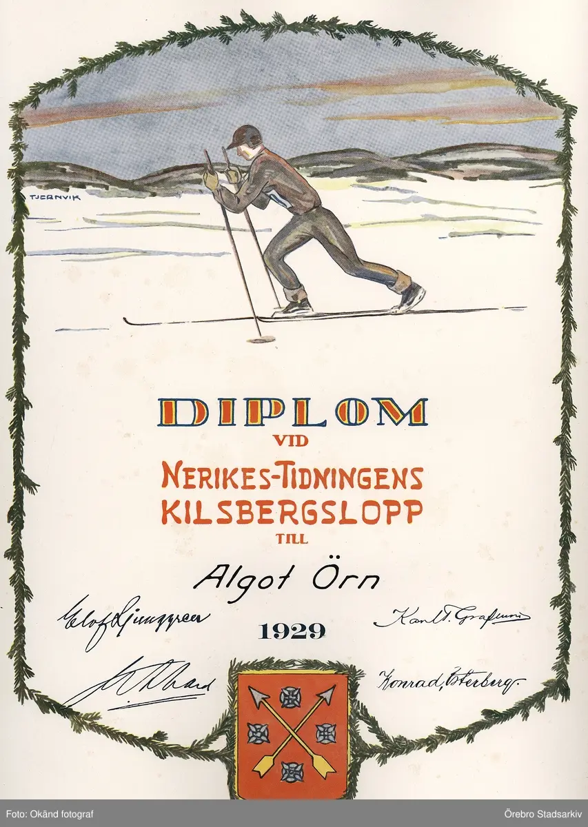 Diplom vid Nerikes-Tidningens Kilsbergslopp, 1929
