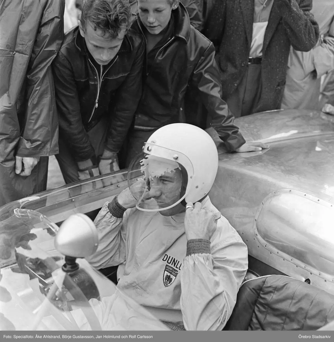 Hjälmen på.. snart dags att åka. Gelleråsen, Karlskoga. 1960-08-07
