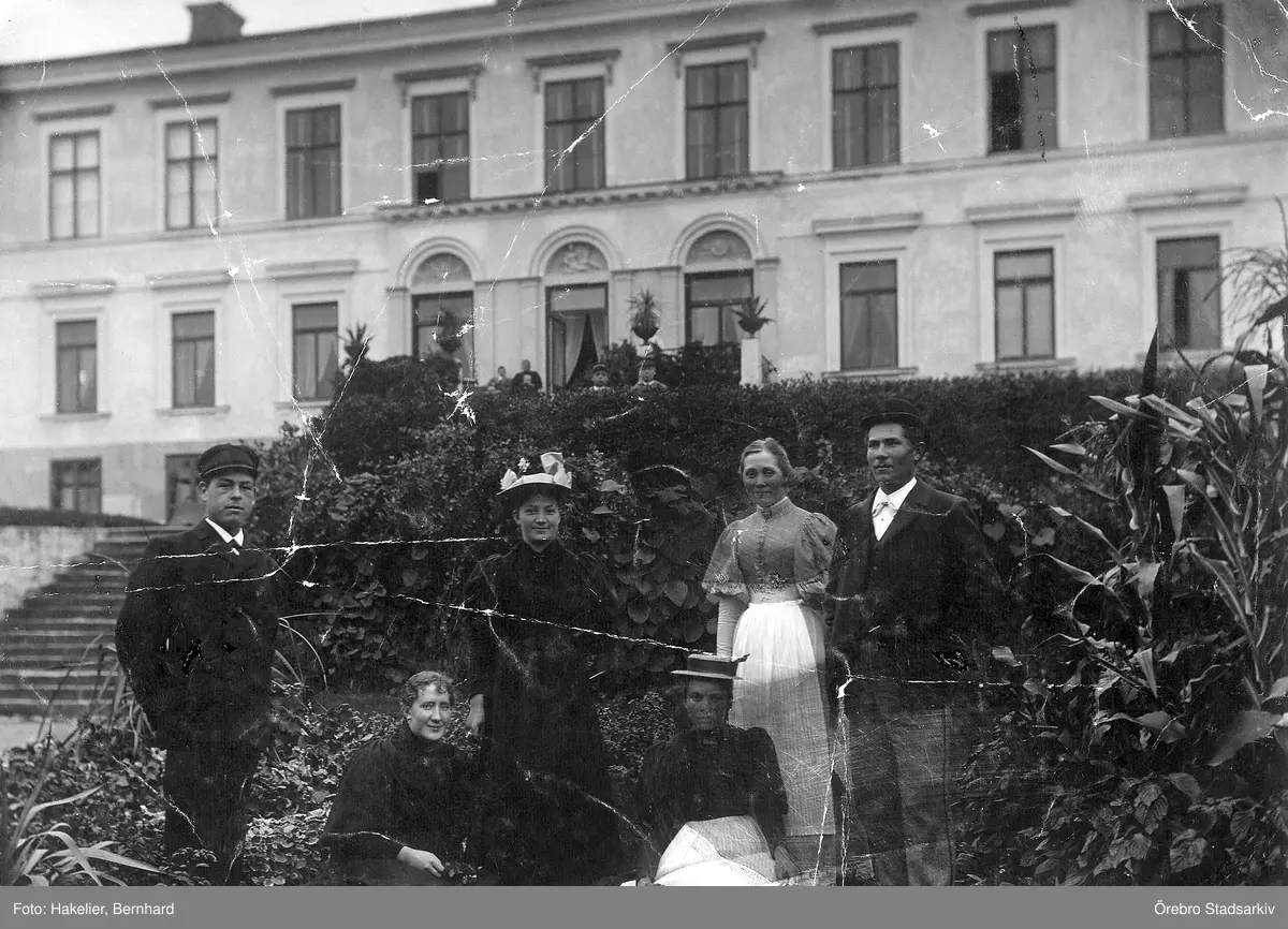 Tjänstefolket framför Karlslunds gård, 1890-tal