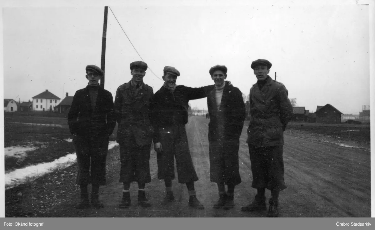 Fem unga män på rad, 1930-tal