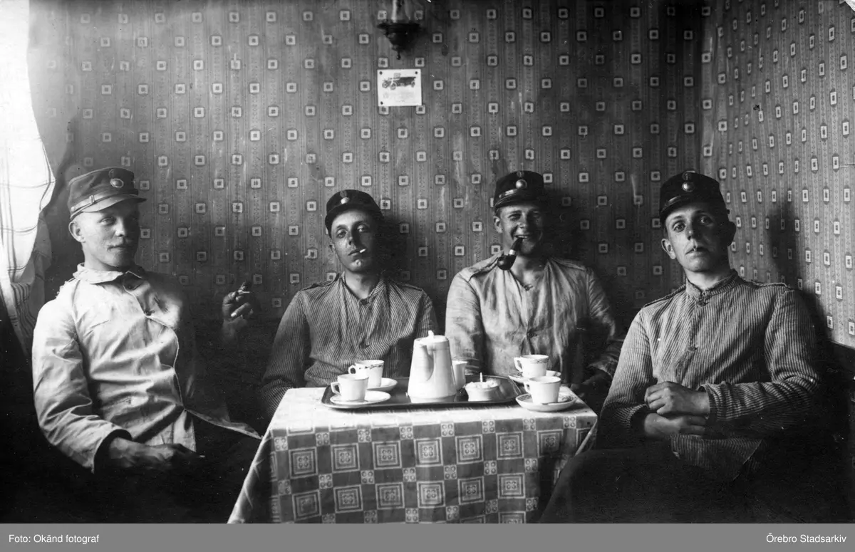 Värnpliktiga röker efter kaffet, 1900-tal