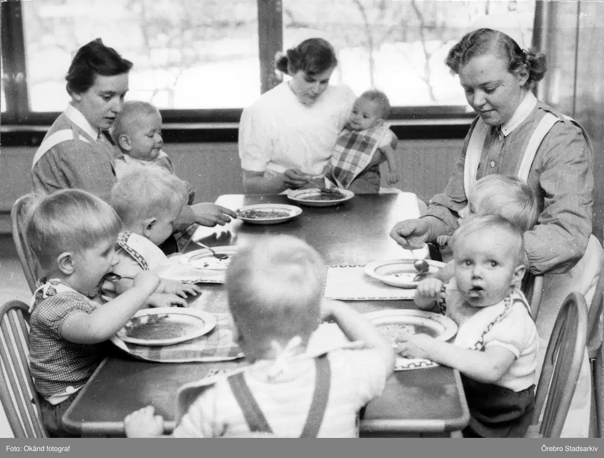 Småbarn äter kräm på Stentorpsvägen, 1950-tal