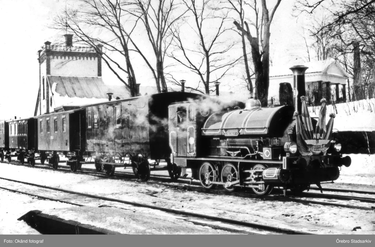 Ångloket NKJ 1 Karlskoga med vagnar, 1956