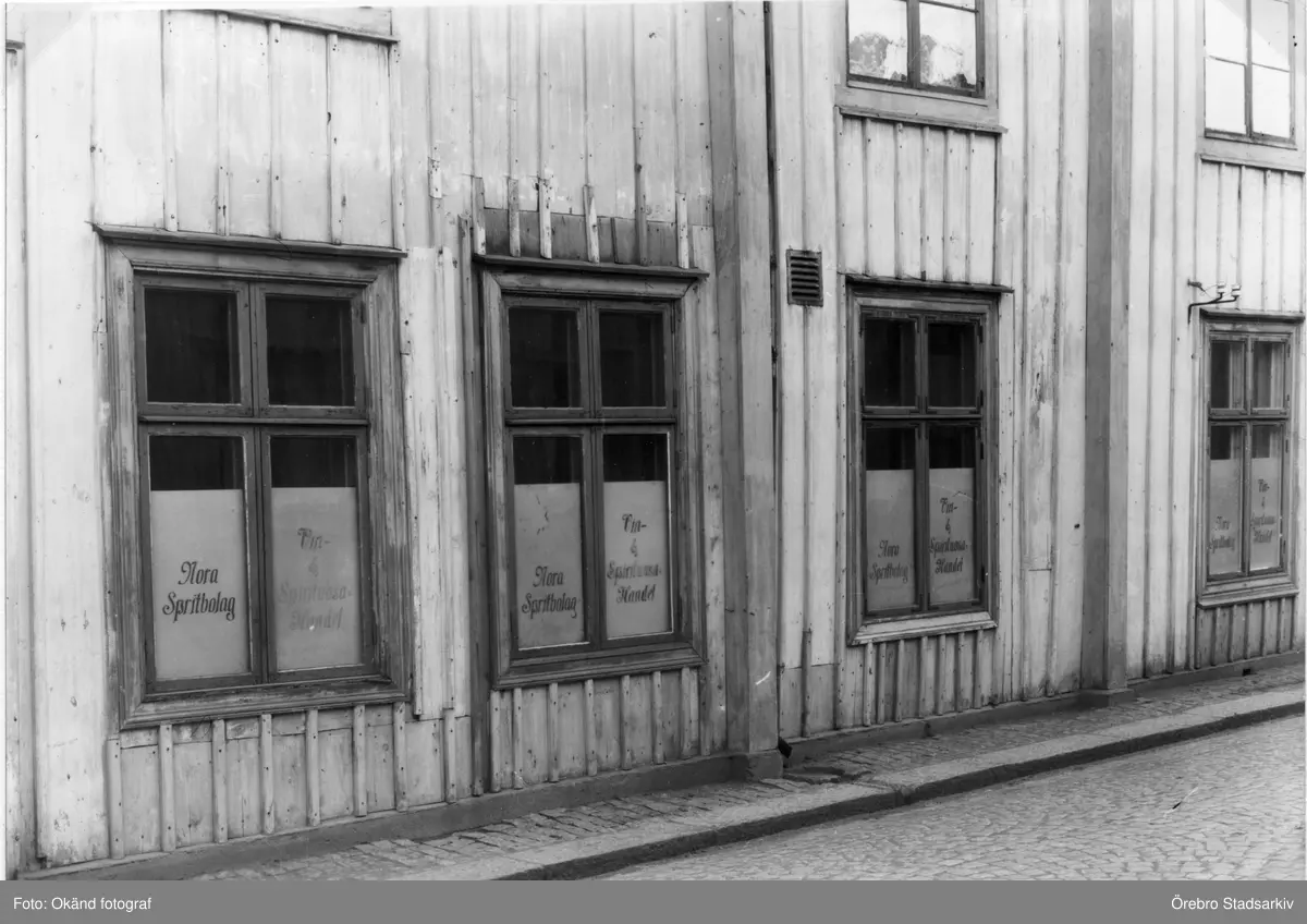 Skyltfönster på Nora Spritbolag på Storgatan 47 i Nora, 1920 ca