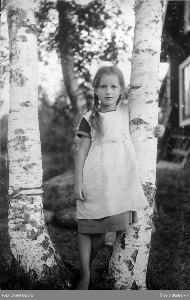 Flicka mellan två björkar i Nora, 1920 ca