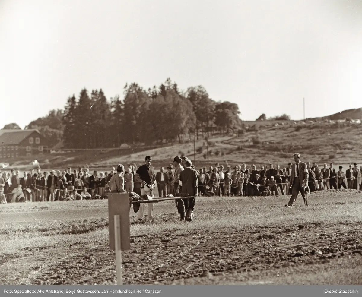 Bonnier nobbar båren på Gelleråsen, Karlskoga. 1958-08-10