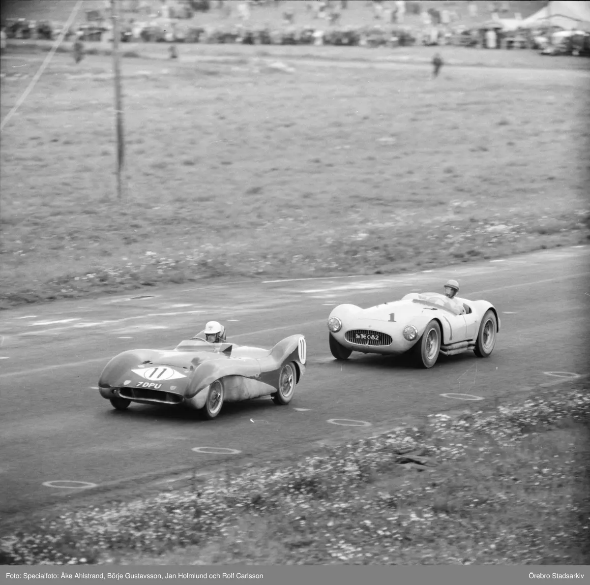 Förestående omkörning. Gelleråsen, Karlskoga.1956-08-25