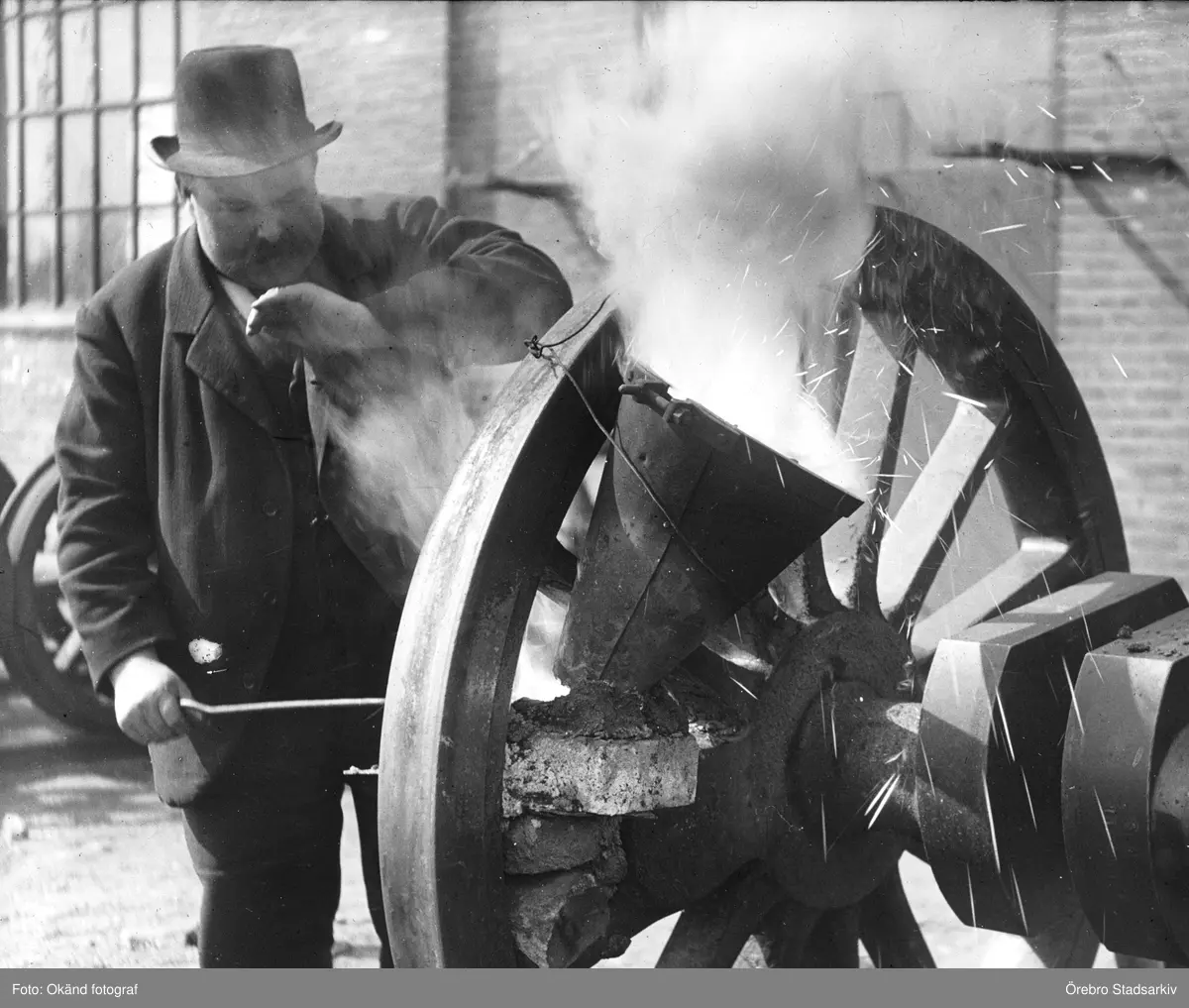 Gjutning och lagning av hjulekrar vid Centralverkstäderna, 1902