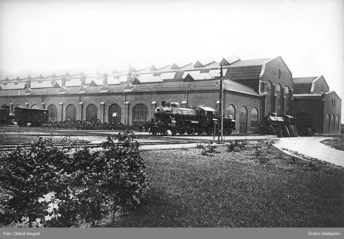 Ånglok utanför lokverkstaden vid Centralverkstäderna, 1902-1909