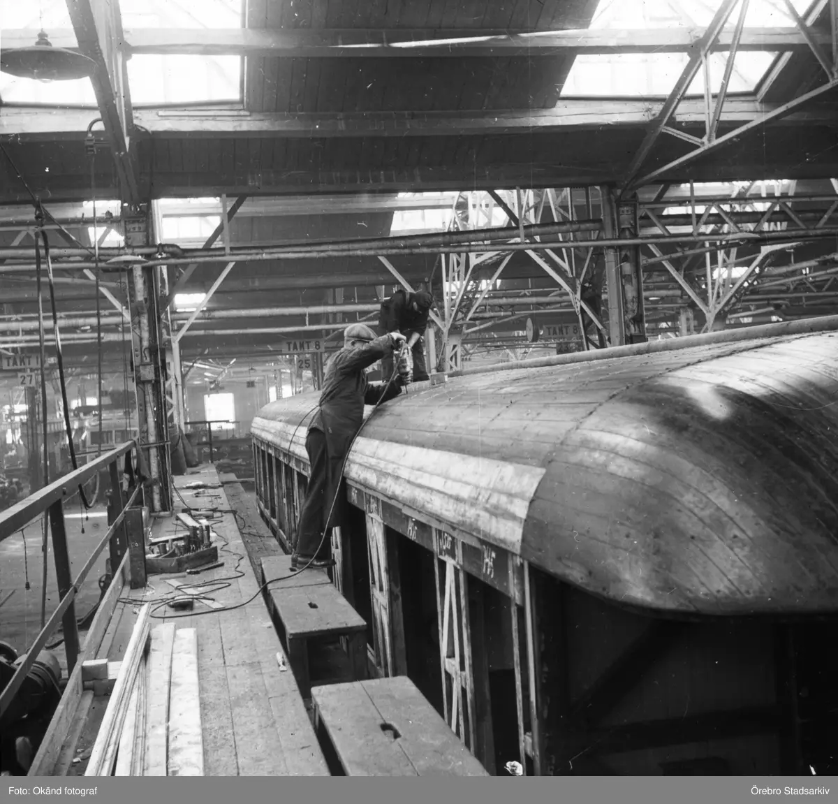 Arbete med vagnstak i vagnverkstaden, 1902-1909