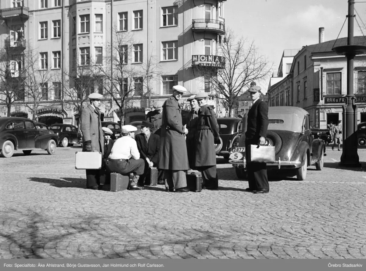 Värnpliktiga som ska rycka in i Örebro, 1946-04-08