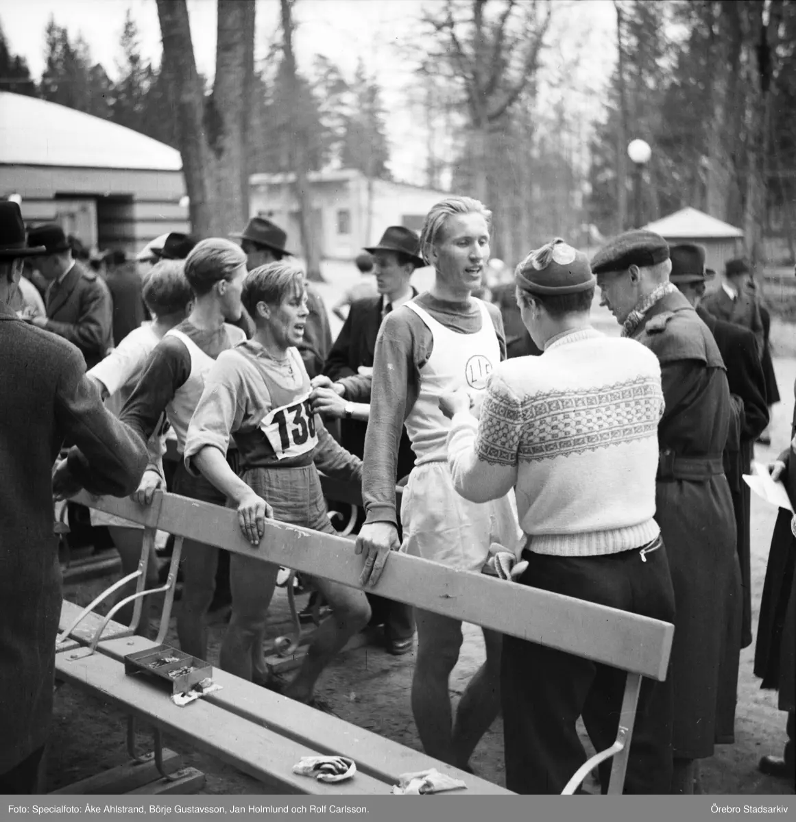Uppvärmning inför terränglöpning i Brunnsparken, 1946-04-14
