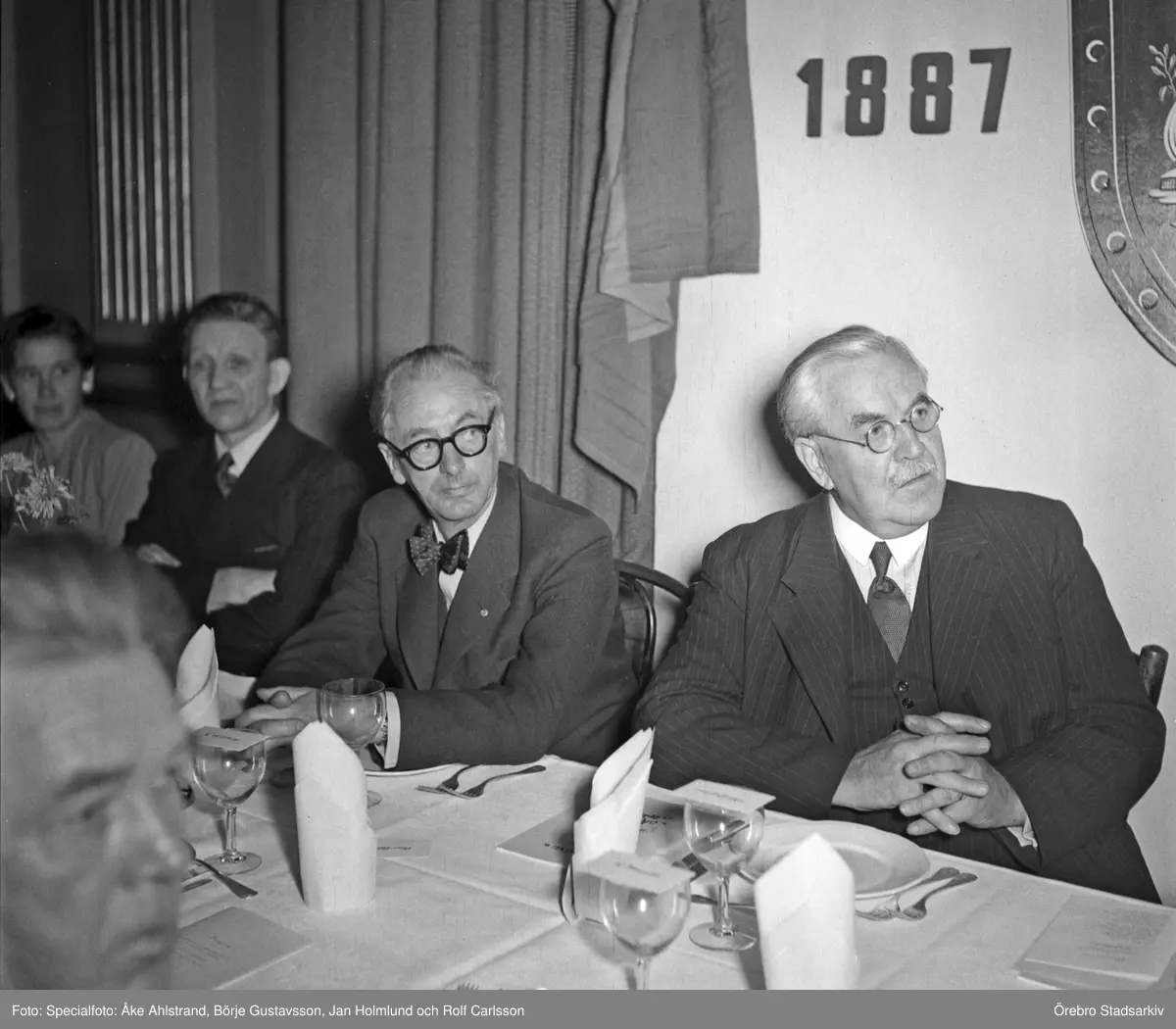 Män vid honnörsbordet på Målarförbundets höstträff på Stora Hotellet, 1947-10-25
