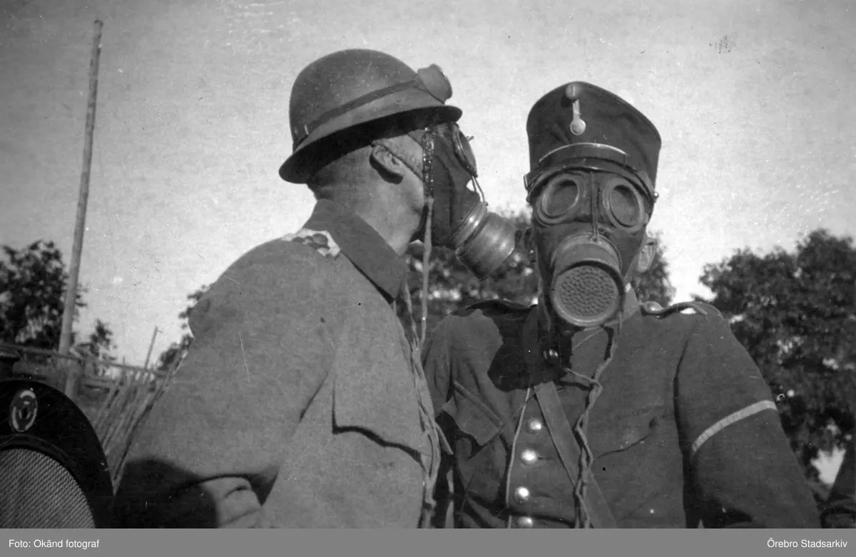 Övning med gasmask på Svea Trängkår, Älvtomtagatan, 1924