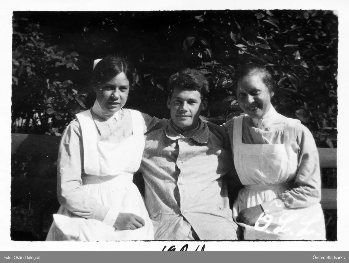 Patient med sköterskor på Örebro Centrallasarett, Grev Rosengatan, 1924