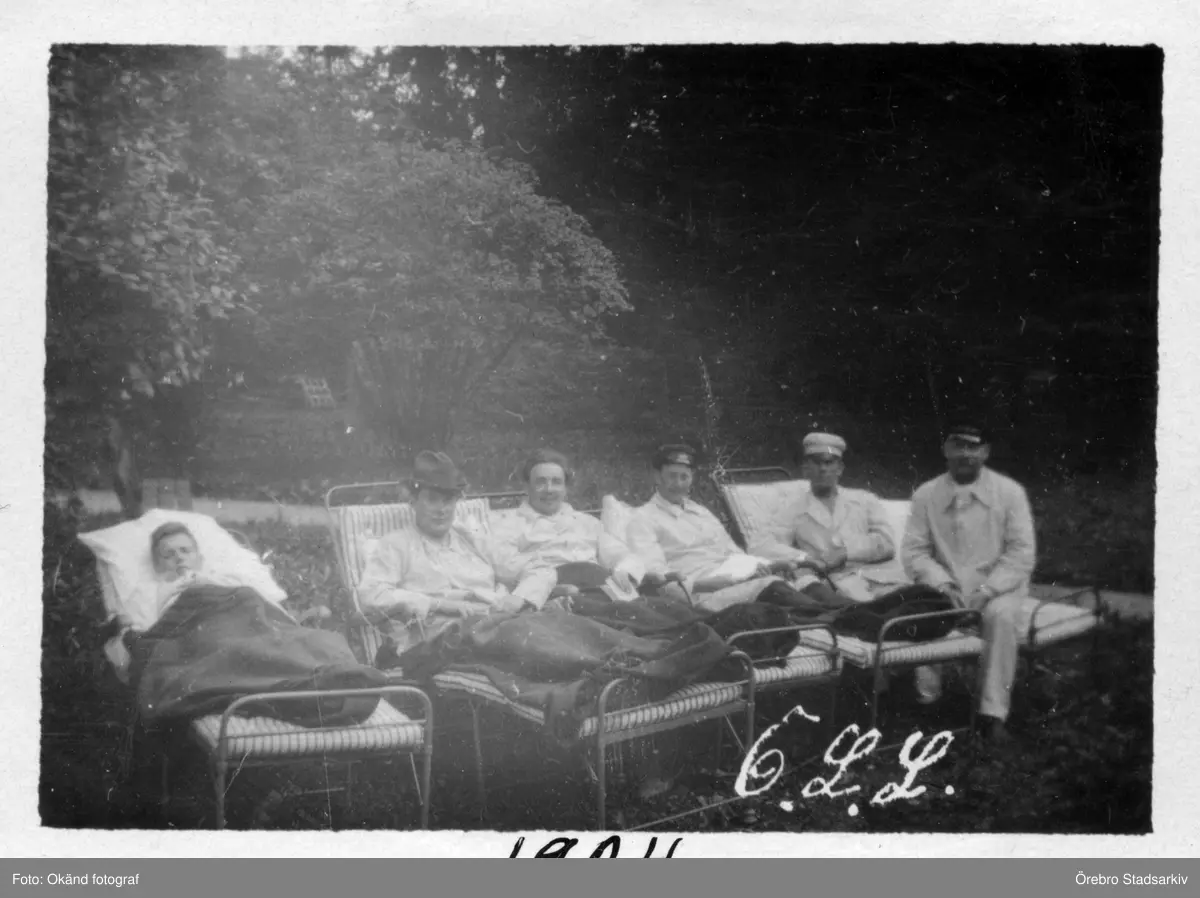 Patienter i sängar utomhus på Örebro Centrallasarett, Grev Rosengatan, 1924