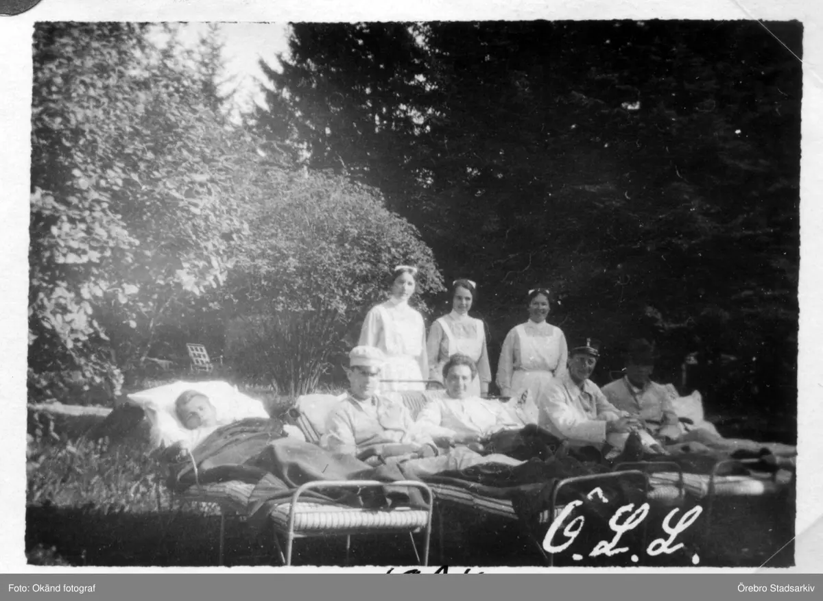 Patienter vilar utomhus på Örebro Centrallasarett, Grev Rosengatan, 1924