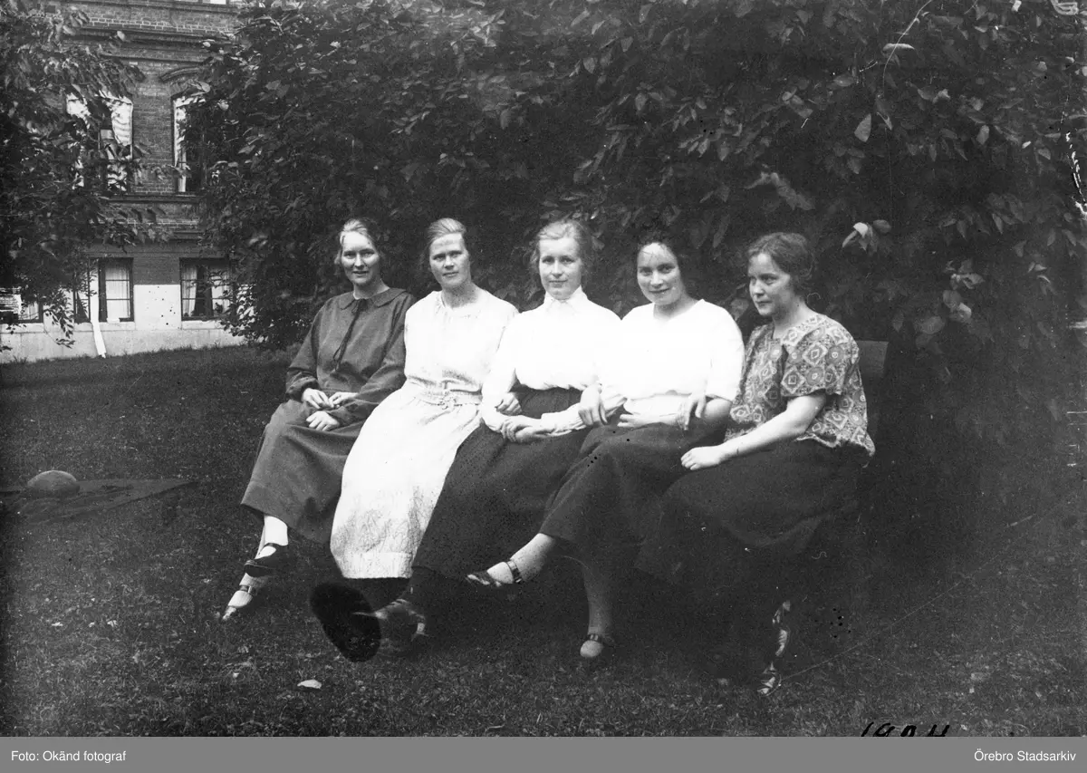 Kvinnor på parkbänk utanför Örebro Centrallasarett, Grev Rosengatan, 1924