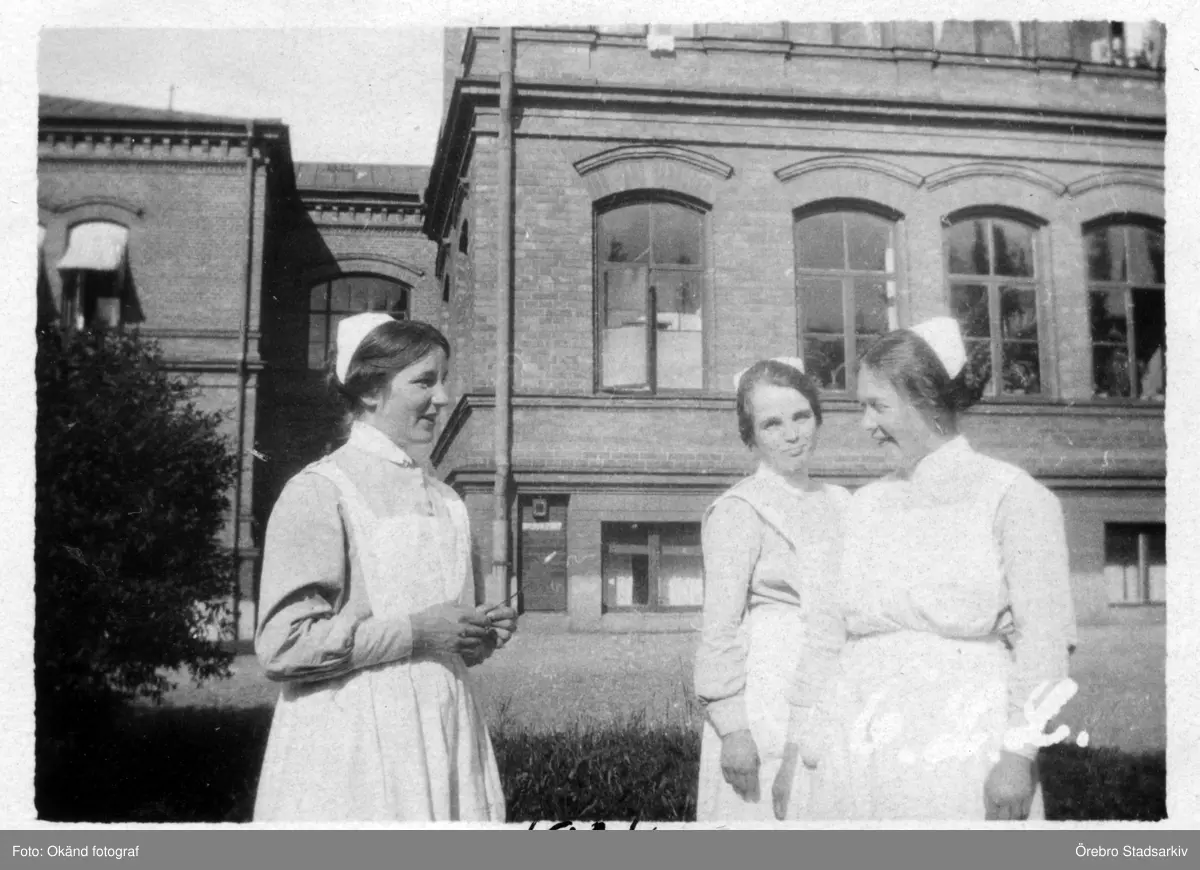 Sköterskor utanför Örebro Centrallasarett, Grev Rosengatan, 1924