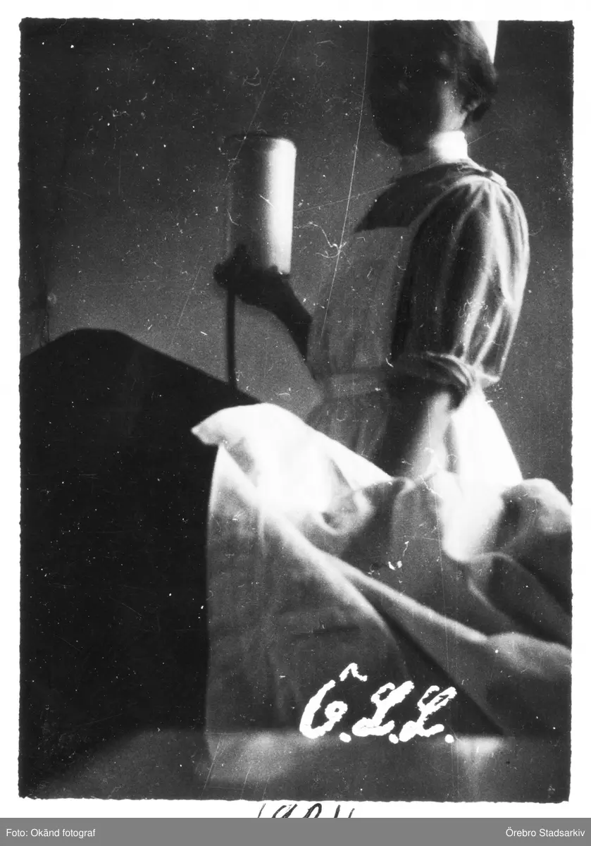 Sköterska ger lavemang på Örebro Centrallasarett, Grev Rosengatan, 1924