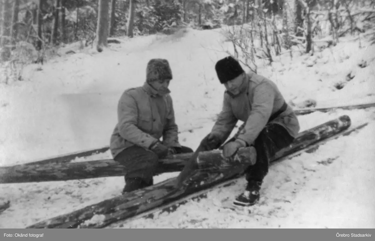 Sågarbete vid Sörbybackens hoppbacke, 1930-tal