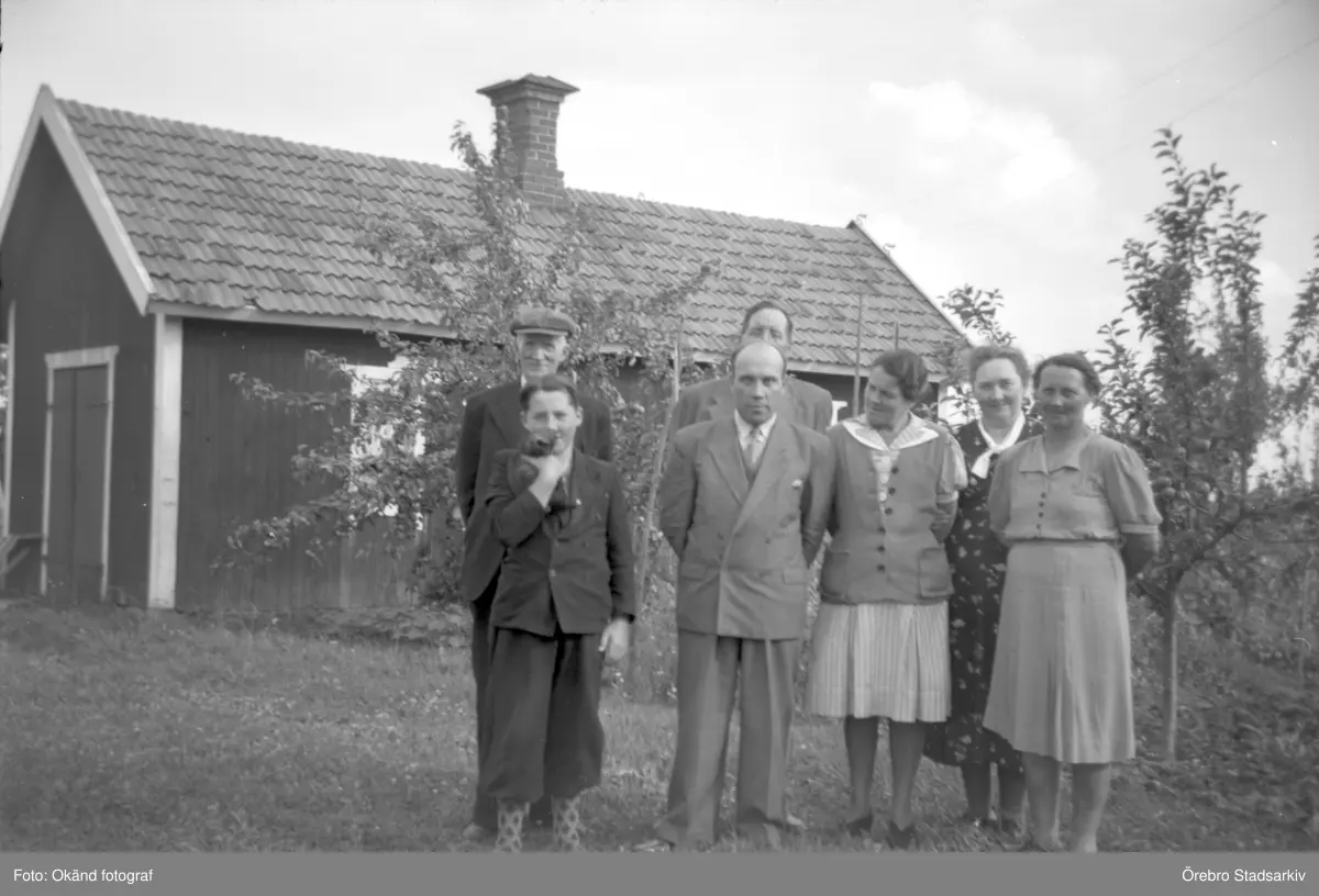 Grupp vid uthus, Stora Mellösa, 1930-tal