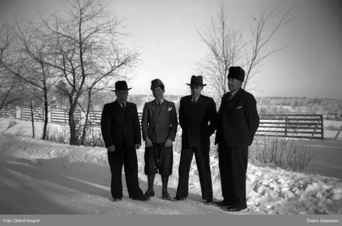 Fyra män på rad i Stora Mellösa, 1940-tal