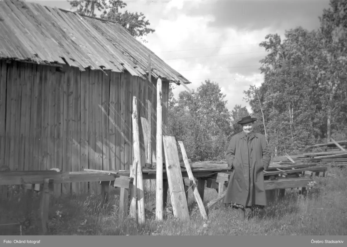 Kvinna vid brädupplag i Råsta gård, Stora Mellösa 1940-tal