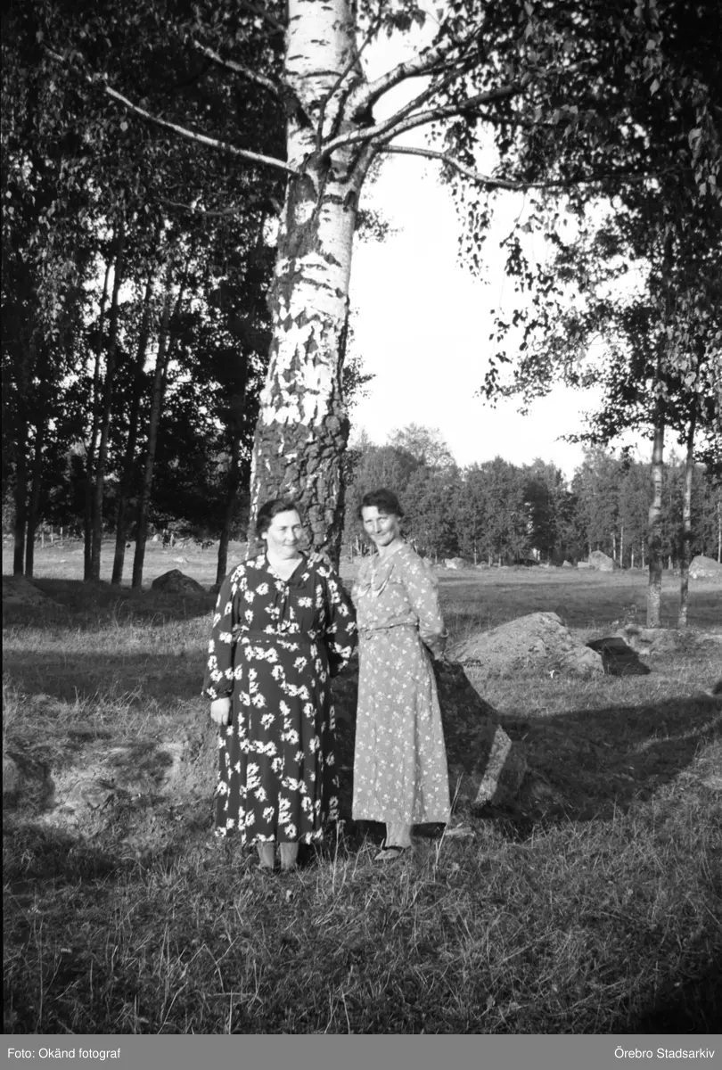 Två kvinnor vid björk i Stora Mellösa, 1930-tal