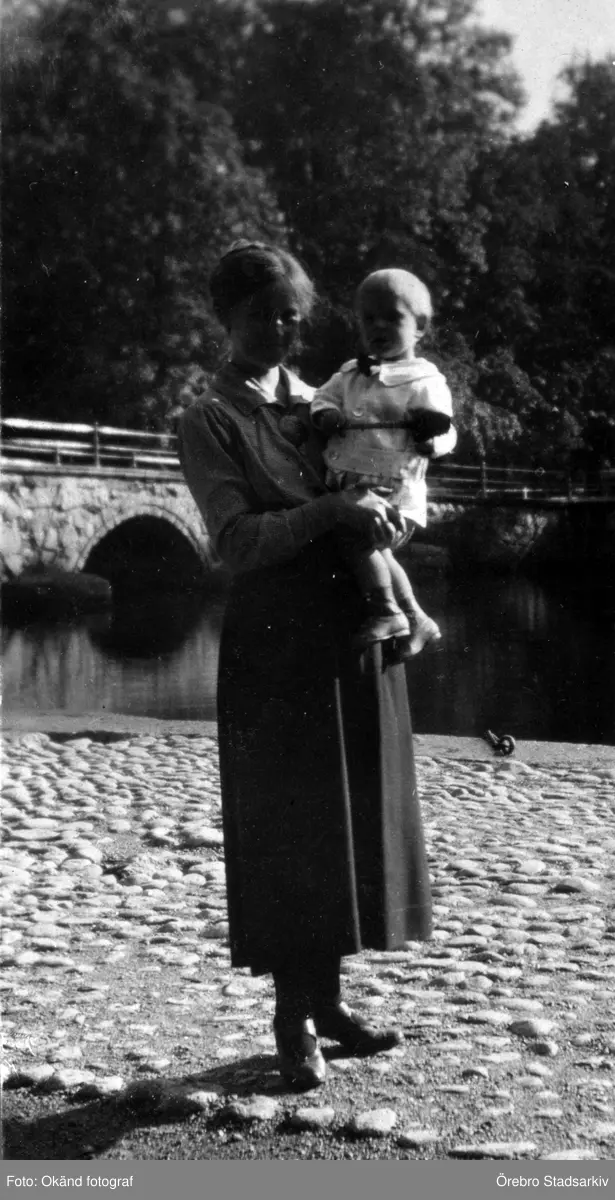 Kvinna med pojke vid Kanslibron, 1920-tal