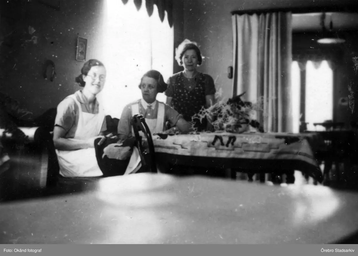 Personal vid bord på Olaigatan, 1940-tal
