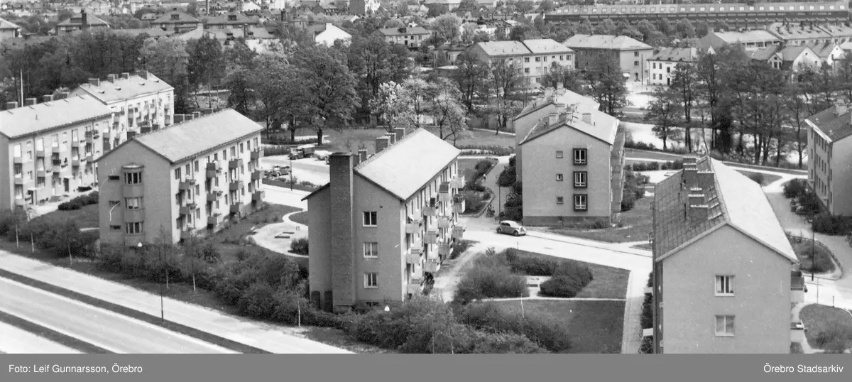 Vy från höghuset i Rosta mot Örnsro, Hagagatan/Trumpetaregatan, 1950-tal