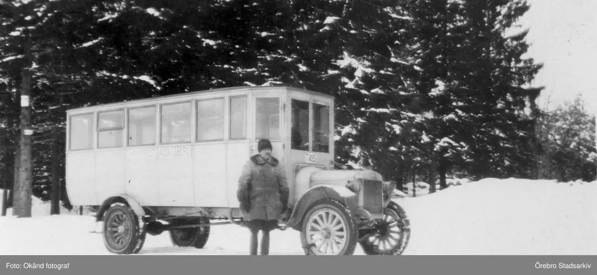 Buss med registreringsnummer T1495 på linje Adolfsberg - Örebro, 1920-tal